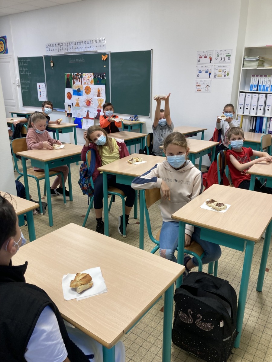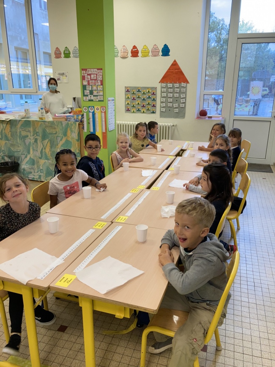 Les élèves de GS ont pu ramasser les tomates du potager, après un été ensoleillé. Cueillir les tomates rouges, les couper, ramasser la menthe et la couper en petits morceaux, autant de gestes qui musclent les doigts en ce début d’année.