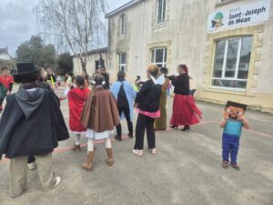 Invasion de personnages carnavalesques ce 12/03/2026 dans la cour de l’école St Joseph de Méan !!