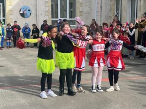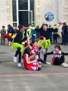 Chacun a pu profiter des jeux surdimensionnés loués par l’APEL (Association des parents d’élèves) pour les enfants et tout le monde s’est régalé avec les délicieuses crêpes confectionnées par les parents.  Même de jolies pom-pom girls ont présenté un spectacle mêlant danse et acrobaties !